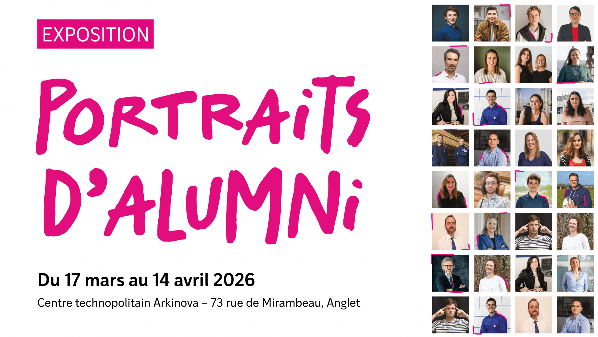 Après avoir fait escales sur les campus de l'UPPA, l'exposition des portraits d'alumni investit le Centre technopolitain Arkinova. Venez découvrir 14 profils de diplômé·es aux parcours variés, illustrant la richesse de la communauté UPPA et ouvrant des perspectives concrètes sur l'insertion professionnelle et la découverte de métiers.